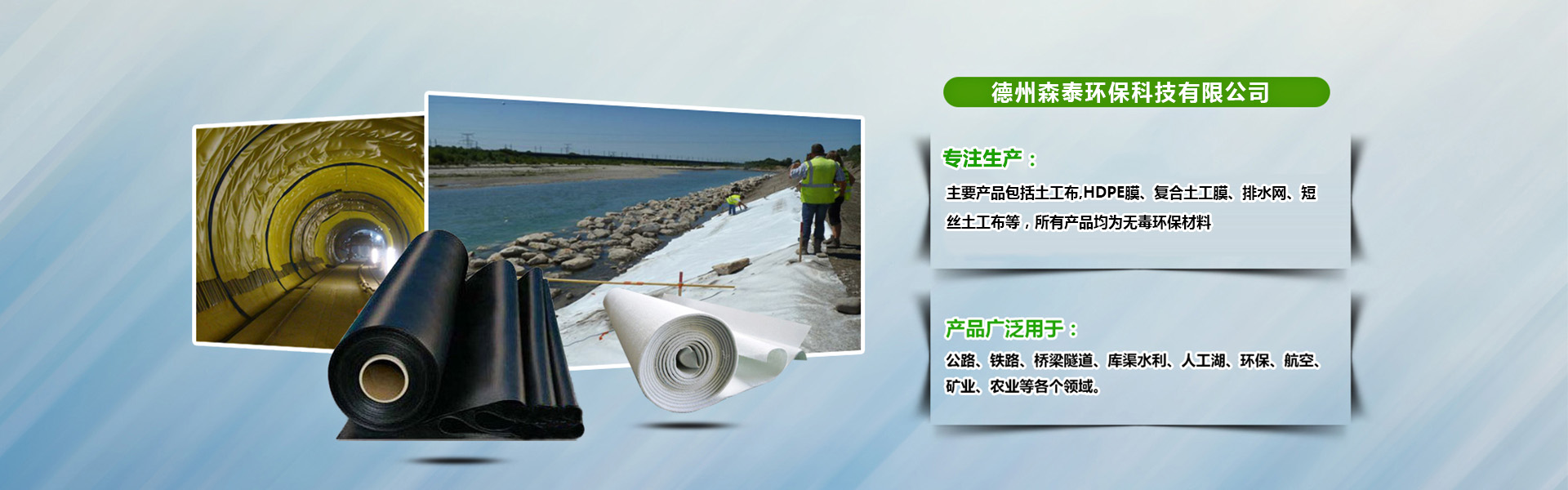 寰峰窞媯嘲鐜繚縐戞妧鏈夐檺鍏徃錛屾.娉扮幆淇濅笓娉ㄤ簬姘村埄銆佺幆澧冨強鐢熸佷慨澶嶆妧鏈爺鍙戝強浜у搧鍒墮狅紝騫舵湁涓撲笟鐨勬柦宸ュ伐紼嬫妧鏈湇鍔″洟闃熴傚凡瀹屾垚姘村埄宸ョ▼100澶氶」錛岀幆澧冨伐紼?00澶氶」錛屽吀鍨嬪伐紼嬪寘鎷崡姘村寳璋冨伐紼嬨佷笁宄″伐紼嬨佹還娌辨渤闃叉笚宸ョ▼錛屼繚瀹氱幆鍩庢按緋誨伐紼嬨佹祹鍗楀瀮鍦懼~鍩嬪満宸ョ▼錛屾鏋楀瀮鍦懼~鍩嬪満宸ョ▼銆佸ぇ鍚岀數鍘傞槻娓楀伐紼嬨佸槈鍏寸伀杞︾珯闃叉笚宸ョ▼銆侀粦榫欐睙鍐滃灕闃叉笚宸ョ▼絳夈傛.娉扮幆淇濅富瑕佷駭鍝佸寘鎷湡宸ュ竷,HDPE鑶溿佸鍚堝湡宸ヨ啘銆佹帓姘寸綉銆佺煭涓濆湡宸ュ竷絳夛紝鎵鏈変駭鍝佸潎涓烘棤姣掔幆淇濇潗鏂欙紝鍙箍娉涘簲鐢ㄤ簬錛?.鐜淇宸ョ▼錛堢伯椋熷熀鍦板湡澹ゆ敼鑹佸伐涓氬満鍦般佺熆涓氥佹按浣撶瓑宸ョ▼銆佽敩鑿滃ぇ媯?鍏繪畺錛岀妞嶇瓑錛?.姘村埄宸ョ▼錛堟睙娌蟲按搴撱佸牑鍧濈殑闃叉笚鍔犲浐銆佹按娓犵殑闃叉笚銆佹姢鍧$瓑錛夊強甯傛斂闃叉笚錛堝湴閾併佸緩絳戠墿鐨勫湴涓嬪伐紼嬨佺妞嶅眿闈佸眿欏惰姳鍥殑闃叉笚銆佹薄姘寸閬撳唴琛瓑錛?.....